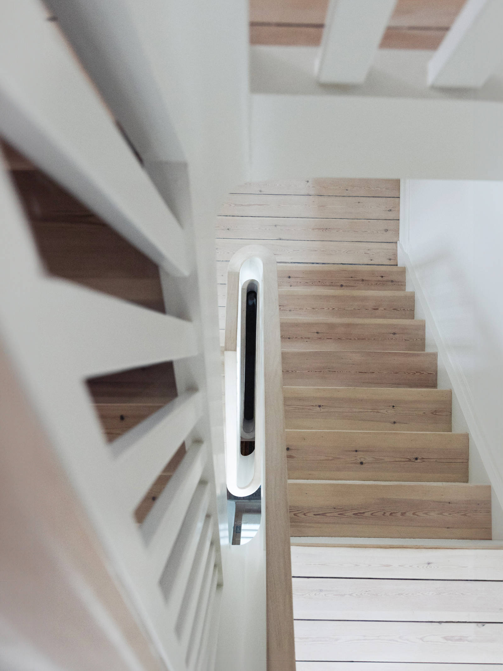 Under the roof, the old wooden beams have been exposed, and what will become the family’s multifunctional room is bathed in light from the new skylights. Maria and Peter have added dormer windows, which offer commanding views of the city and the inlet.