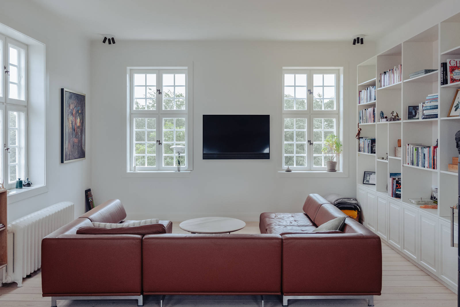 However, the story really starts in a doctor’s practice on the main square Rådhustorvet in central Vejle, which Maria and Peter purchased in 2016. The apartment, located centrally in the square, was built in 1930, and required extensive work to transform the former 336-square-metre surgery into a modern family home while respecting the style and beauty of the original architecture.
