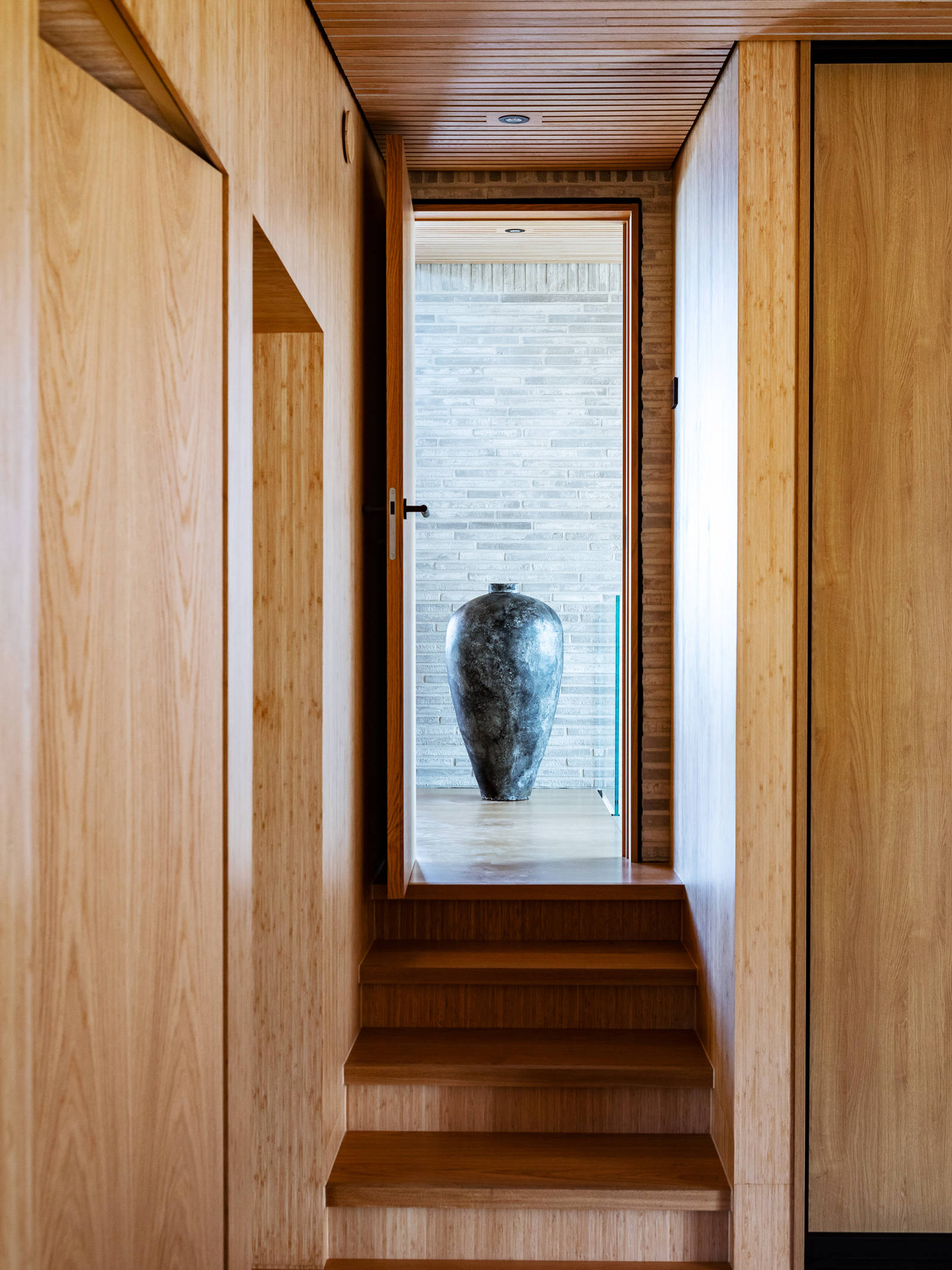 Chinese bamboo and the natural stone which is used for the unique bathtub and for the worktops, both inside and for the outdoor kitchen. The consistent use of just a few materials produces an understatedly elegant and coherent feel.