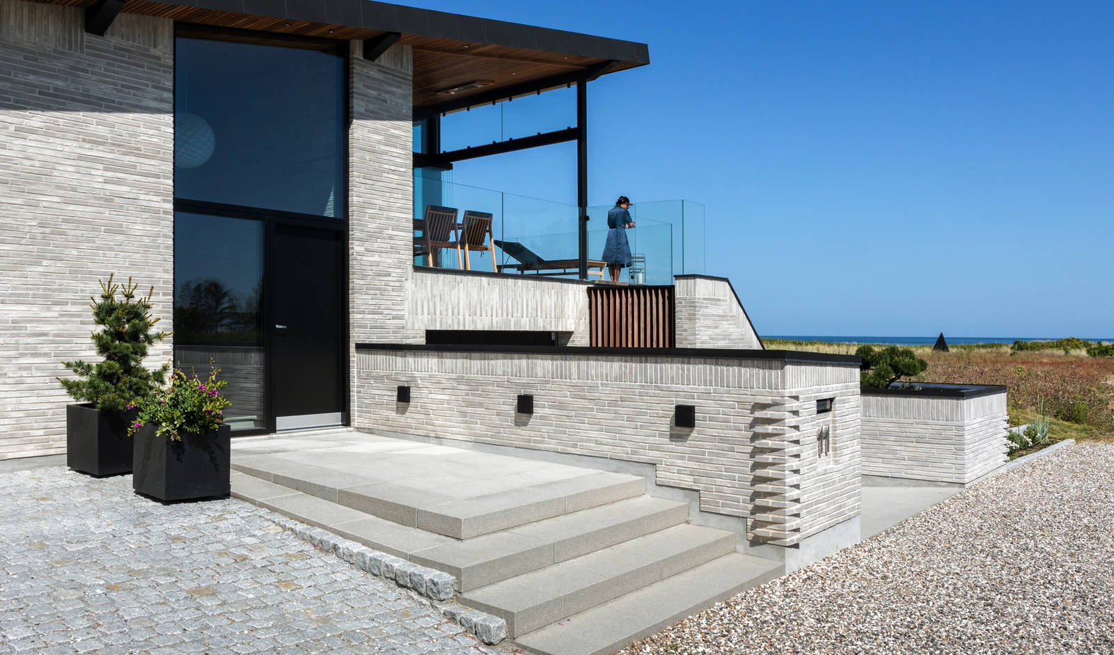 In designing the holiday home, every detail was carefully considered: The beachy colours of the 100% handmade Kolumba brick from Petersen Tegl, the white cement grouting with added beach sand to ensure the house blends in naturally with its surroundings, Danish oak,